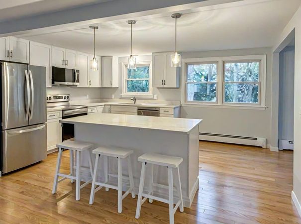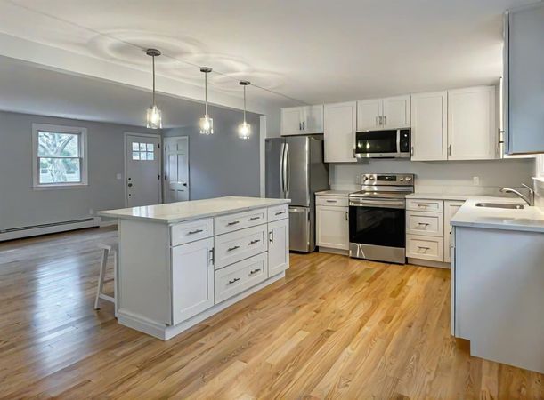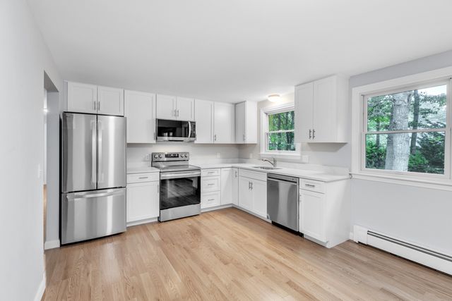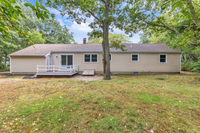Located in the desirable East Falmouth community, 17 Tarpon Rd is a beautifully updated 3-bedroom, 2-bathroom home that combines modern comfort with coastal charm. Step inside to discover freshly painted interiors and a spacious open floor plan, perfect for both everyday living and entertaining. The kitchen is a highlight, featuring stainless steel appliances and ample cabinetry, ideal for cooking and hosting. A beautiful fireplaces is the highlight of a large family room thath's adjacent to the kitchen. Outdoors, the large deck provides the perfect setting for relaxing or enjoying summer barbecues. The attached one-car garage adds convenience, offering extra storage or protection for your vehicle. This home is located near local amenities, schools, and scenic beaches, making it an ideal spot for year-round living or a peaceful retreat.